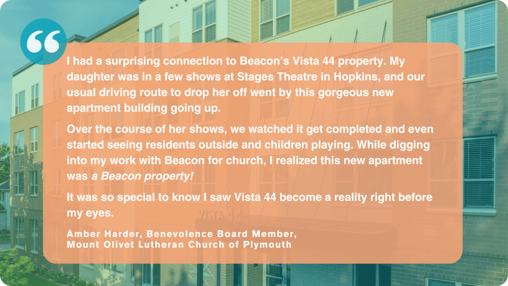 Gratefully, our strong and capable staff, a strategic and dedicated Board of Directors, and support from individuals and communities across the metro have allowed Beacon to take this moment to focus on protecting, sustaining, and growing our mission for the benefit of current Beacon residents, and those who we will someday have the opportunity to serve through a Beacon home.
