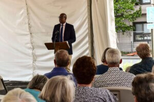 Gathering in person, many for the first time since the pandemic, congregants at Plymouth celebrated an expansion of the apartments at Lydia with a ground blessing. Attending was a collective who’s who of Beacon leaders and supporters from Plymouth who are all united in our shared Beacon vision. The energy in Plymouth’s parking lot was a reminder of how powerful we are when we come together for home.