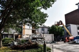 The original entrance, walls, and iconic awning have been taken down. On the surface parking lot will soon stand 6-stories of deeply affordable, supportive homes for individuals who have experienced homelessness. Lydia has proven in the past that the existence of these homes only makes the neighborhood a better place to live for everyone.