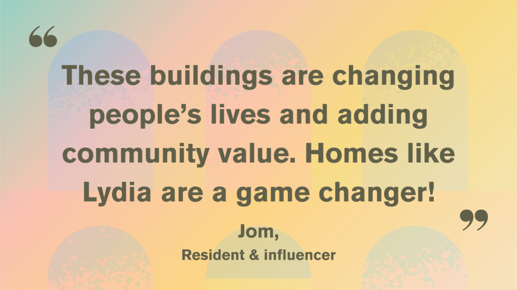 With homes like Lydia, residents who have experienced multiple occurrences of housing instability not only receive a home they can afford, but resources and tools that help them thrive in their life.