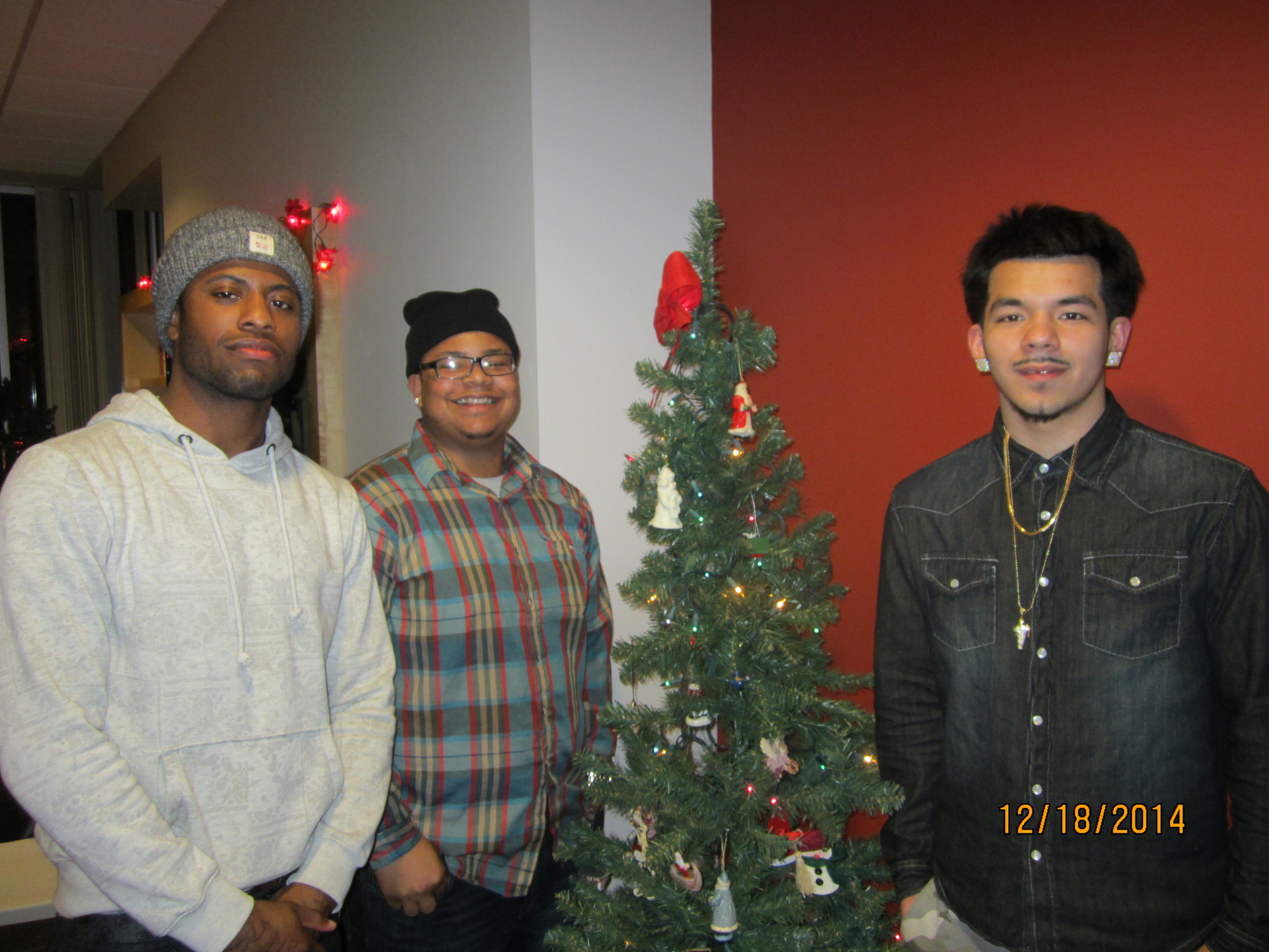 Volunteers have been hard at work since October gathering items for the gift room, planning the menu and getting decorations ready. Each youth who attended the event was able to fill up on pasta dinner, get a plateful of donated holiday cookies and get the chance to be escorted [by an elf, no less] through a gift room stocked with household goods, hygiene products, and fun items to wear or use to decorate their apartments. The community room was fully decorated which only added to the festive atmosphere.